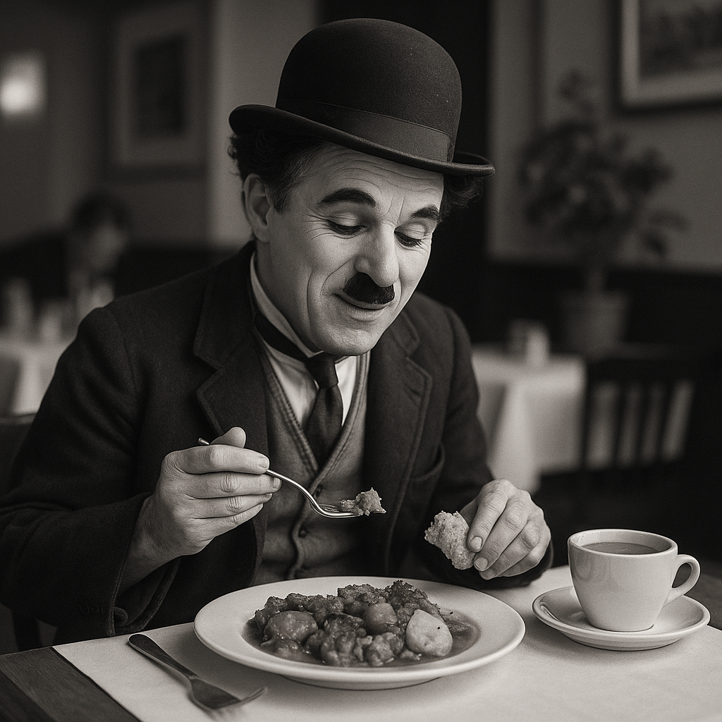 찰리 채플린의 식탁은 유머로 시작됐지만, 현실은 웃기지 않았습니다.