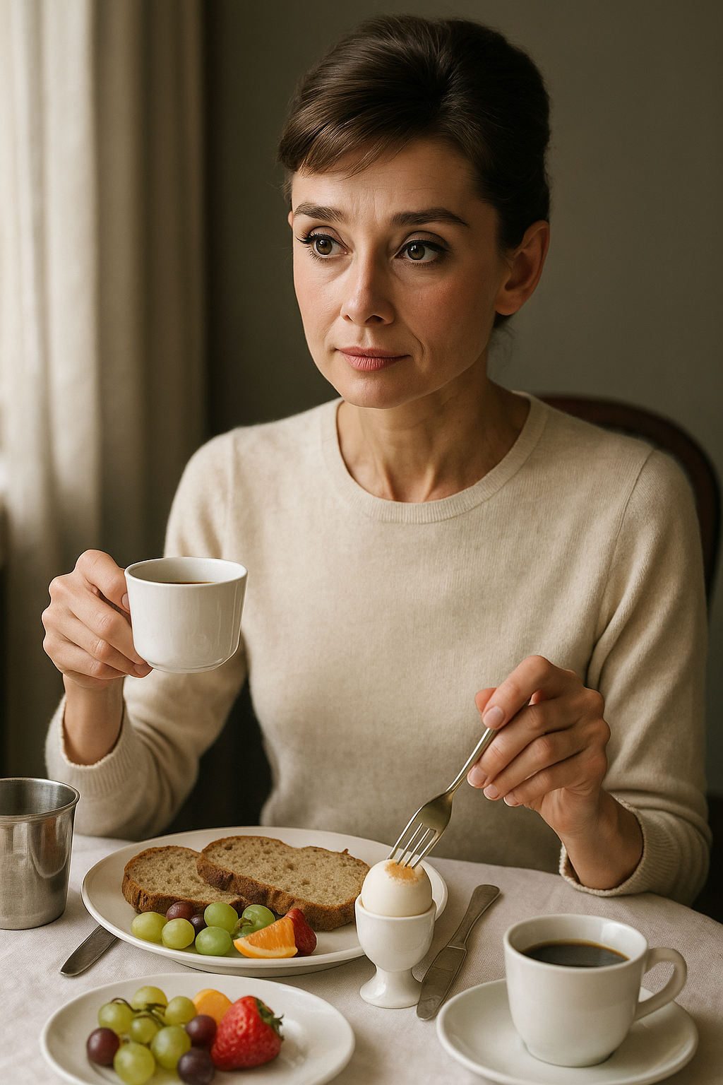 현실 속 오드리 헵번은 통밀빵, 삶은 달걀, 과일, 커피까지 한 상 차려 먹는 ‘헬시 퀸’이었습니다.
