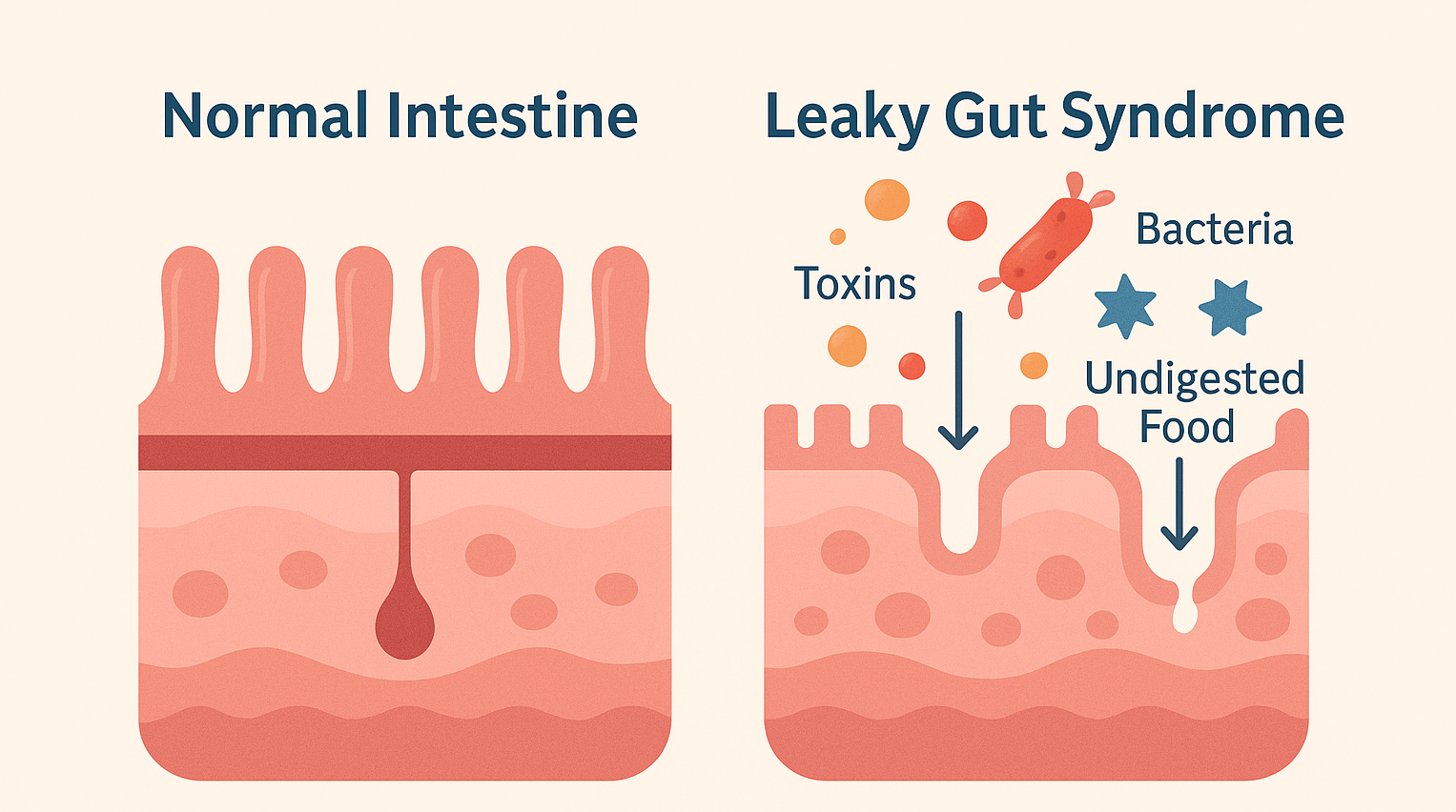 그런데 스트레스, 서구화된 식습관, 잦은 약물 사용 등으로 장내 환경이 무너지면 장벽이 헐겁게 열리면서 소화되지 않은 단백질, 독성 물질, 세균 조각 등이 혈액 속으로 새어 들어가게 됩니다.