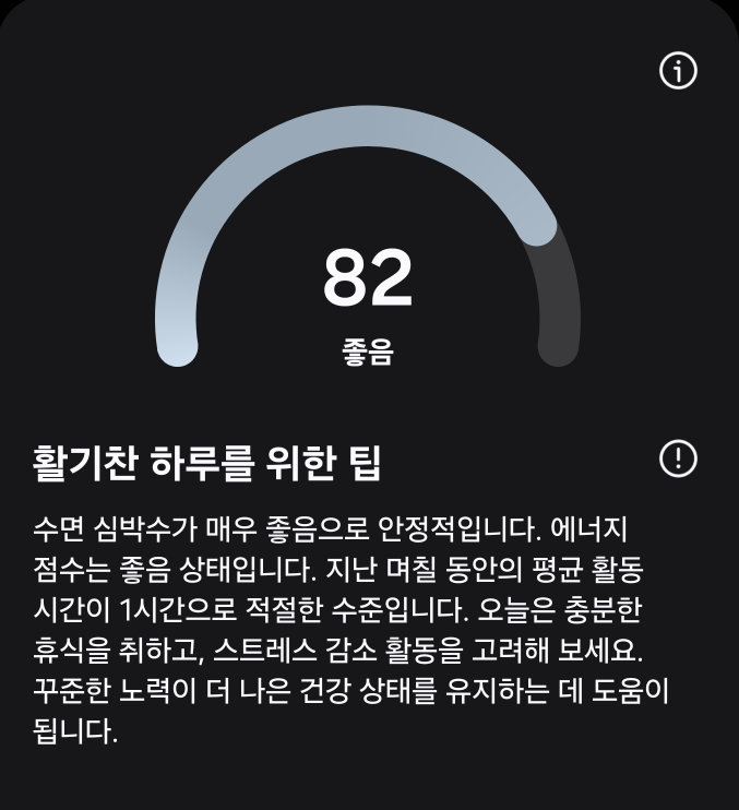 물론 이 점수가 절대적인 건 아닐 수 있지만, 제 생활 패턴을 돌아보고 하루 컨디션을 점검하는 데 꽤 유용한 지표라는 생각이 들었습니다.