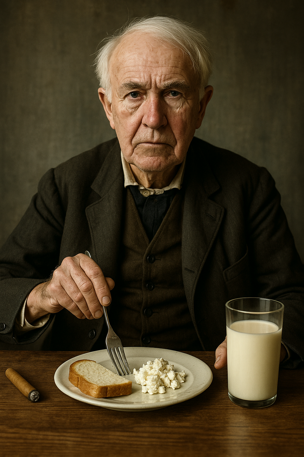 에디슨은 음식보다 발명에 에너지를 집중하겠다며 이런 라이프스타일을 선택했어요. 실제로 하루 14~20시간씩 일하며 혁신을 이루어낸 집중력의 비결이 바로 이 '극한 식단 관리'에 있다고 여겨졌죠.