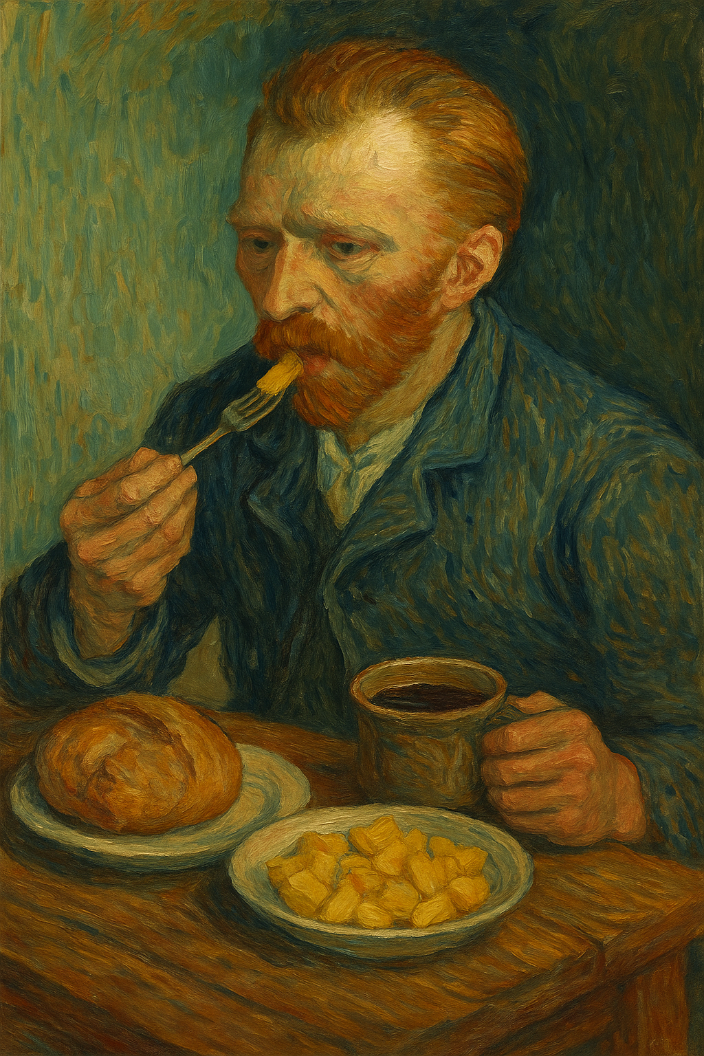 고흐의 위장병, 체력 저하, 정신적 불안정은 이런 소박한 생존식과 무관하지 않았습니다.