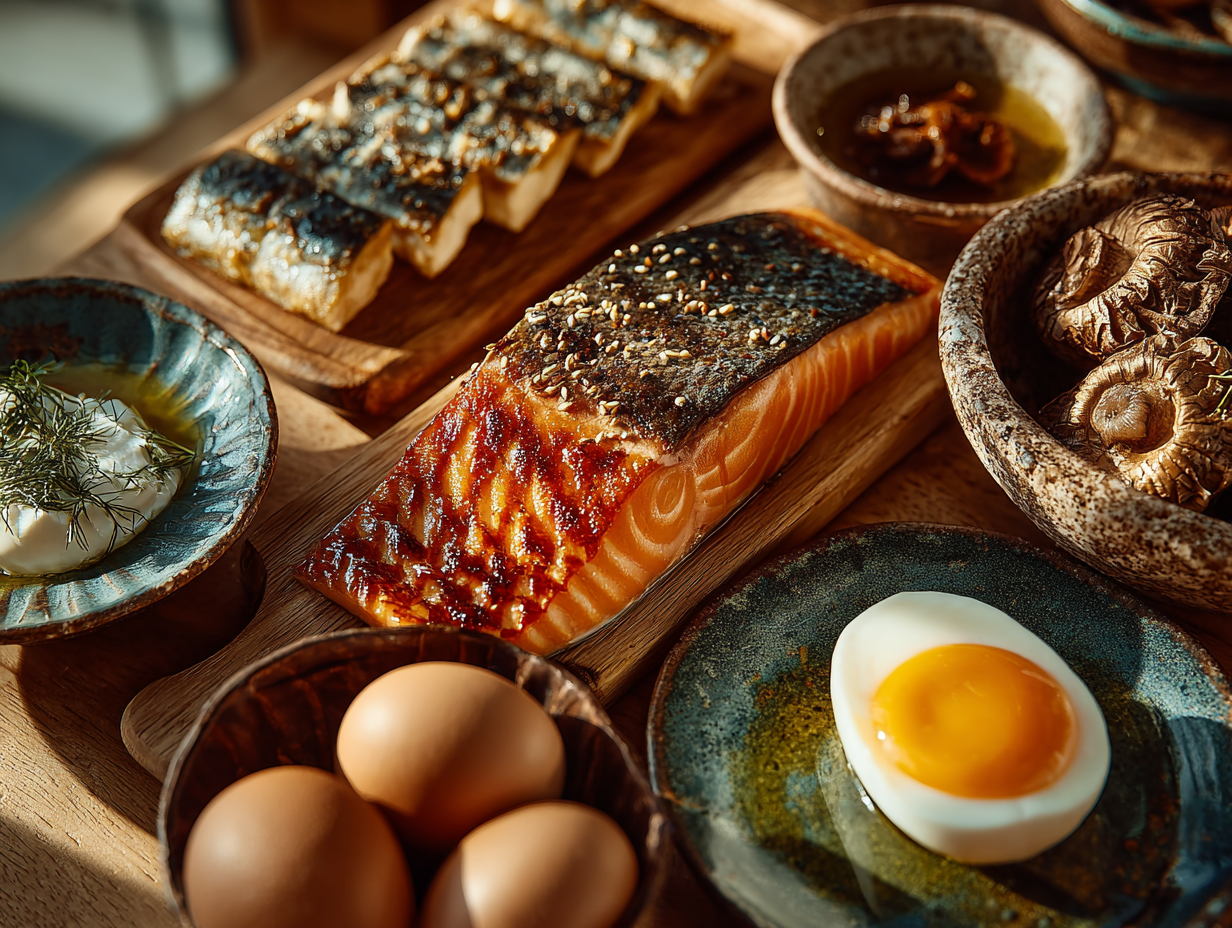 - 매일: 달걀 1–2개, 말린 표고버섯 소량, 비타민D 강화 우유/요거트 1–2컵.