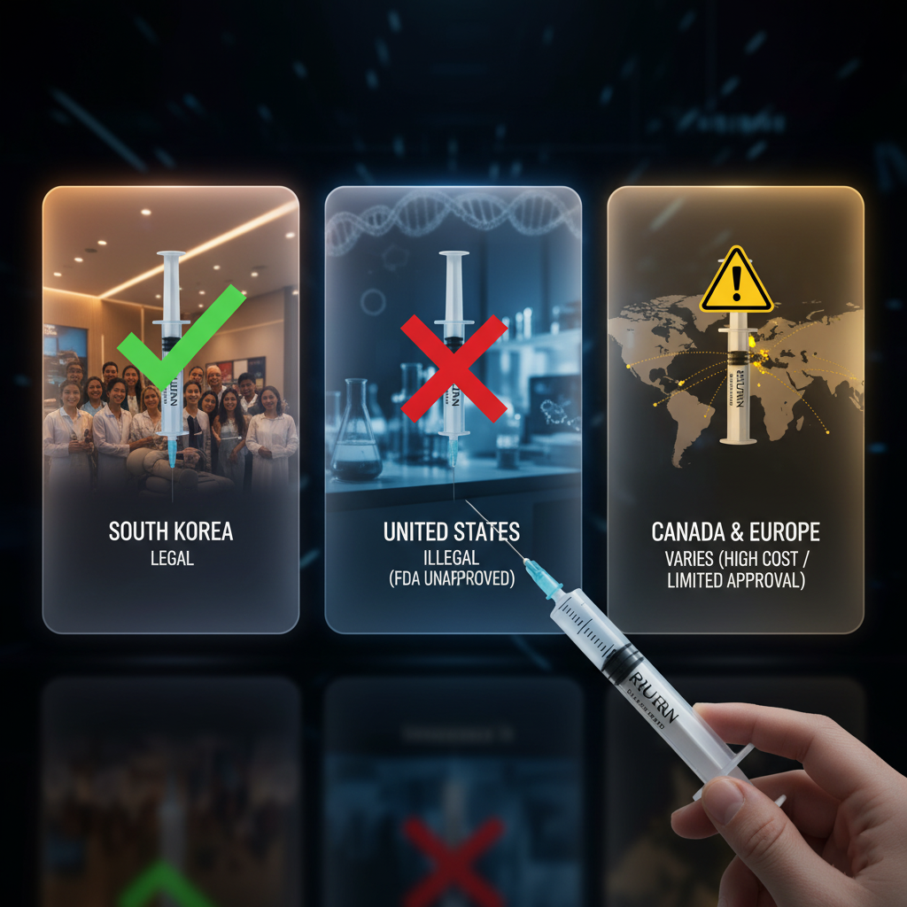 | 🇺🇸 미국 | ❌ 불법 | FDA 미승인. PN(연어 DNA) 주사 안전성·표준화 부족 이유로 시술 불가. 세럼·크림만 허용. |